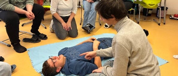 Wenn sich jemand in der Schule verletzt oder plötzlich schlecht fühlt, sind unsere Schulsanitäter zur Stelle. Die 13 Schülerinnen und Schüler der Jahrgangsstufen 7-9 wurden schon im Jahr 2024 von den Maltesern für die Erste Hilfe ausgebildet.