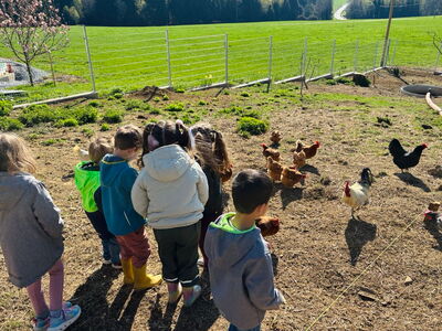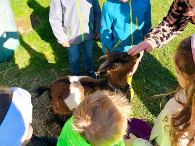 Es gab viele Tierbegegnungen mit Kühen und Kälbchen, Hühnern, Pferden, Pfauen, Ziegen, Hasen sowie Katzen und einem Hund. Die Vorschulkinder erfuhren dabei viel über deren Lebensweise, deren Nahrung und über die von bestimmten Tieren gewonnenen Produkte.