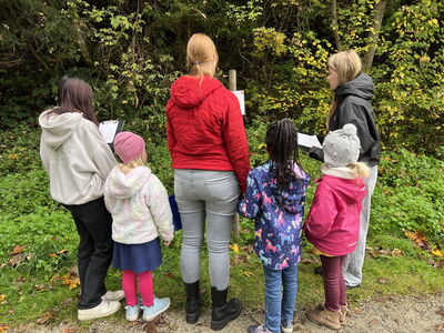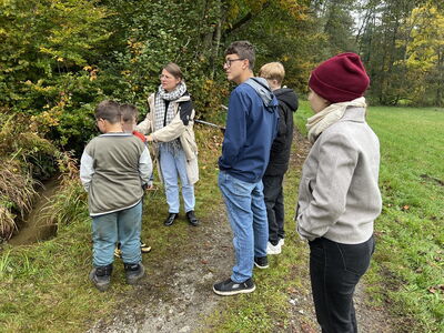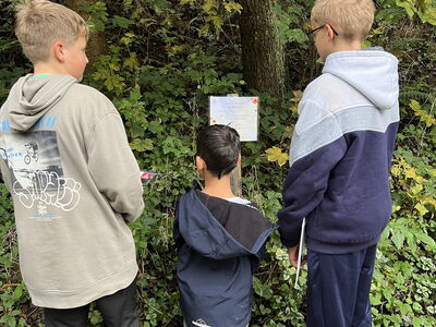 Unterwegs auf dem Weg am Bach entlang waren Schilder mit Rätseln aufgestellt, die gelöst werden mussten.