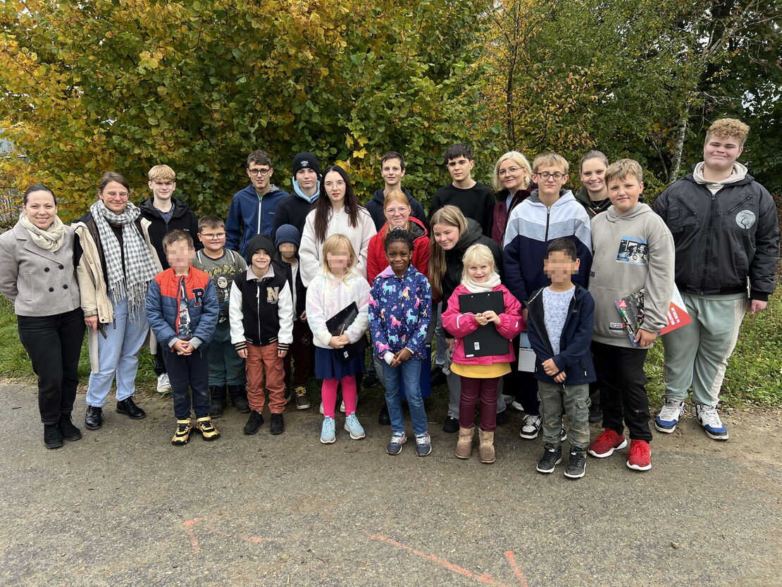 Die Schülerinnen und Schüler der Klasse 7/8 mit ihrer Lehrerin Frau Klöpfer übernahmen dabei die Patenrolle für die Kinder der 1. Klasse mit ihrer Lehrerin Frau Maier.