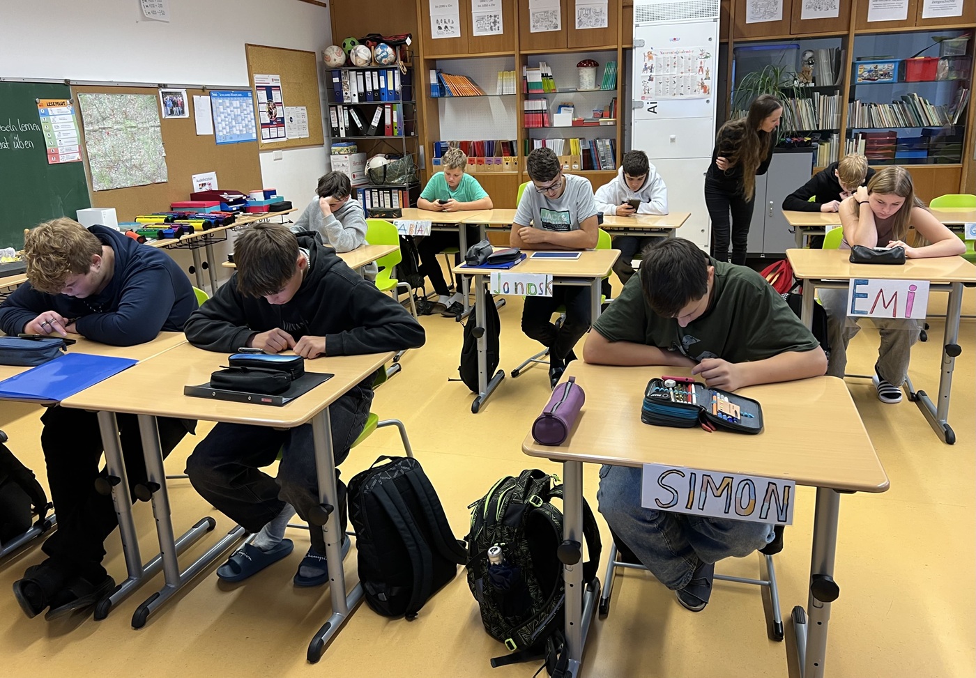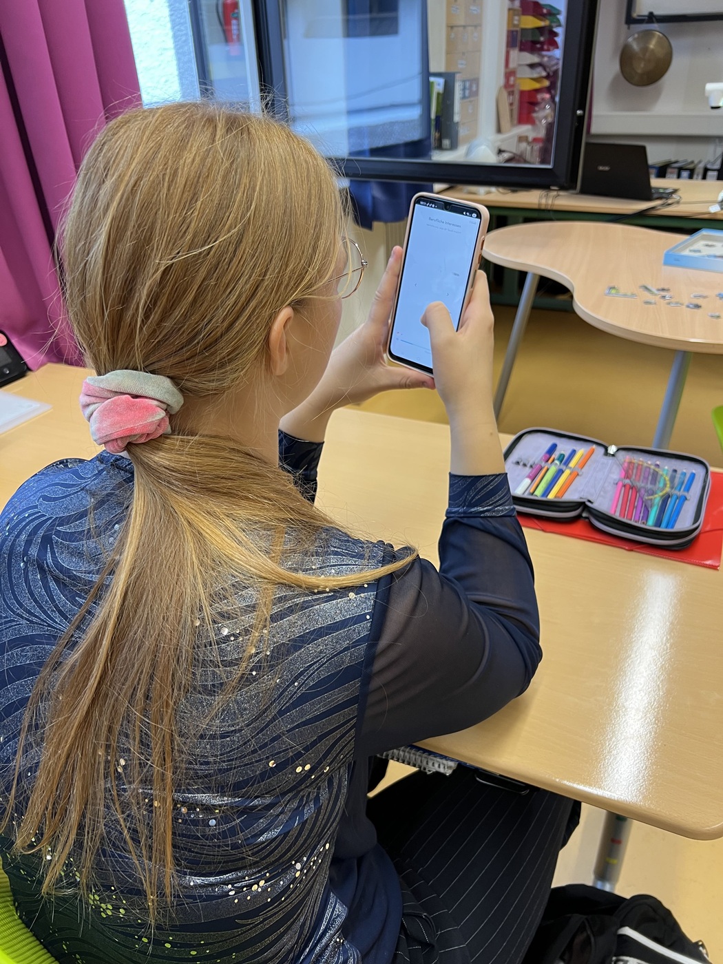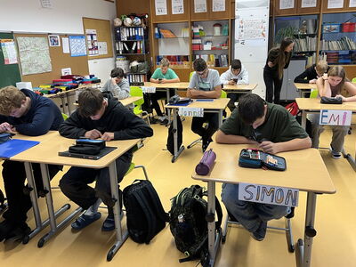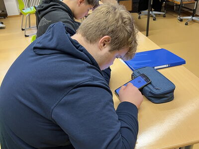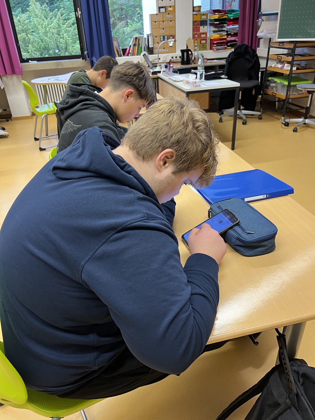 Das Recrewt-Team möchte Schülerinnen und Schüler für ein Praktikum oder für die Ausbildung mit den passenden Unternehmen zusammenbringen. Nach einer kurzen Einführung durften wir uns mit unseren Handys in die Recrewt-App einloggen. Wir beantworteten Fragen zu unseren Interessen und Fähigkeiten und im Anschluss zeigte uns die App „Matches“ an, also Ausbildungsberufe und dazu passsende Stände auf der Ausbildungsmesse. Diese „Matches“ bewerteten wir dann entweder positiv oder mit einem Daumen nach unten. Auf einem Zettel notierten wir uns dann die für uns passenden Ausbildungsberufe und Aussteller mit deren Standnummer auf der Messe. Wenn wir jetzt die Ausbildungsmesse besuchen, dann werden wir ganz gezielt die passenden Aussteller besuchen und befragen.