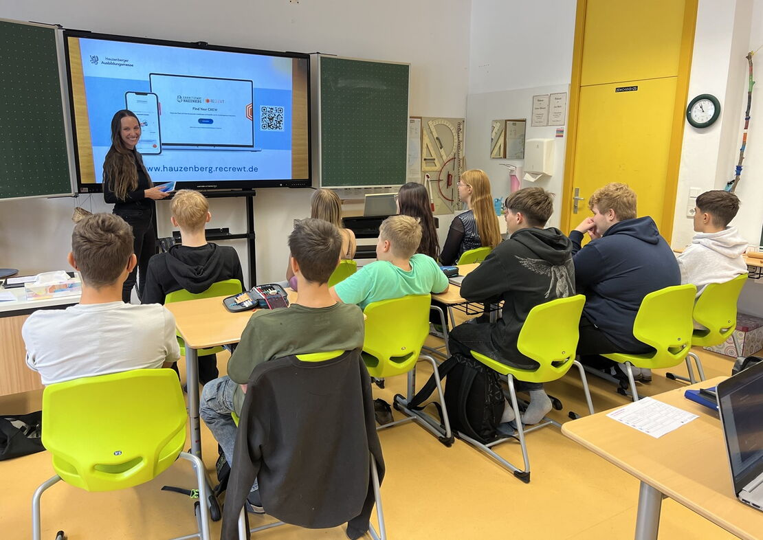 Damit wir uns auf der Ausbildungsmesse gut zurechtfinden, bekamen wir am Freitag, den 10. Oktober 2025, eine tolle Vorbereitung durch Bianca Kujath vom Recrewt-Team.