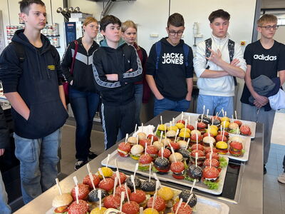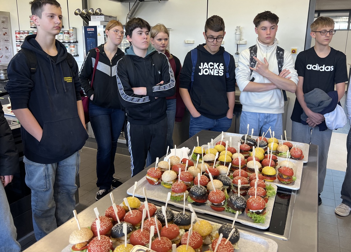 Wir bekamen Einblick in verschiedene Berufe, die man dort mit viel Unterstützung erlernen kann: Metzger, Gärtner, Maler und Lackierer, Fachlagerist, Tischler, Maurer, Fachpraktiker in Hauswirtschaft, Frisör, Verkäufer, Gastronomieberufe und Berufe in der Küche. Es gab Mitmach-Stationen und auch einiges an Essen zum Probieren. Wir erfuhren Wissenswertes zum Berufsvorbereitungsjahr und der Möglichkeit, den Quali nachzuholen. Wir waren uns alle einig: Dieser Besuch hat sich gelohnt.