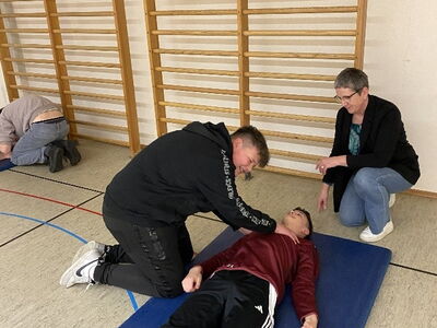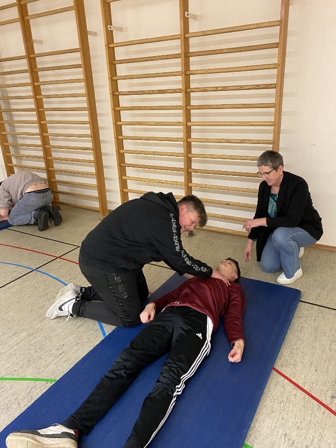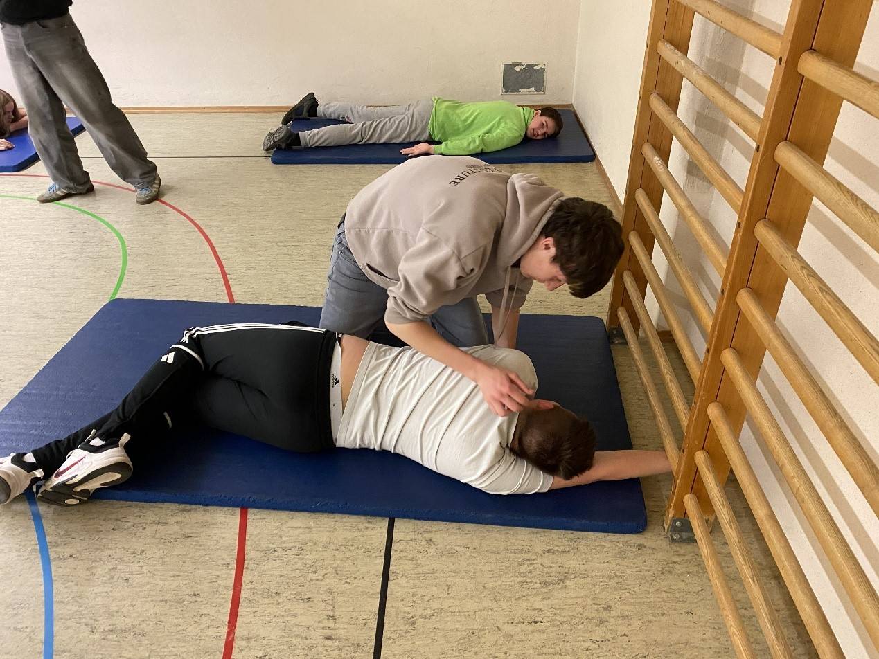 In diesem Schuljahr erhielten sie eine Auffrischung durch unsere heilpädagogische Förderlehrerin Frau Fürlinger und wissen jetzt wieder genau, was im Notfall zu tun ist. Mit kleinen Verletzungen dürfen alle Kinder gerne in das Klassenzimmer der Klasse 7/8 kommen. Dort steht ein reichlich befüllter Rucksack für die Verarztung bereit.