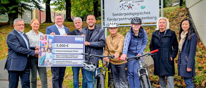 Vertreter der Allianz Beratungs- und Vertriebs-AG der Geschäftsstelle Passau haben eine Spende in Höhe von 5000 Euro an die Schulleitung der Michael-Atzesberger-Schule in Hauzenberg überreicht.